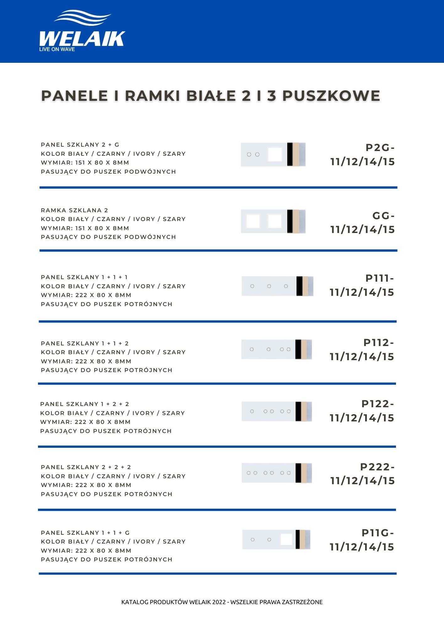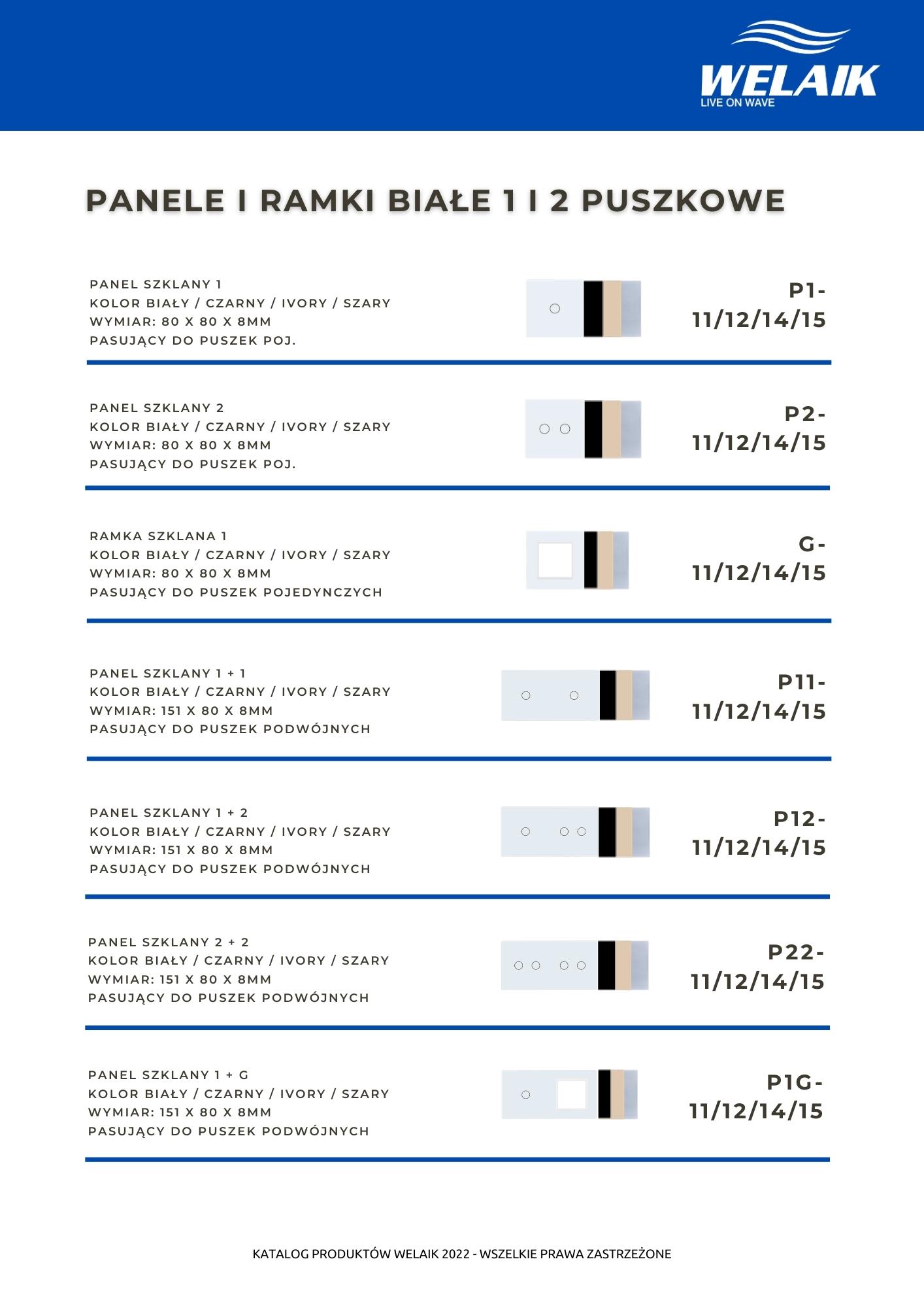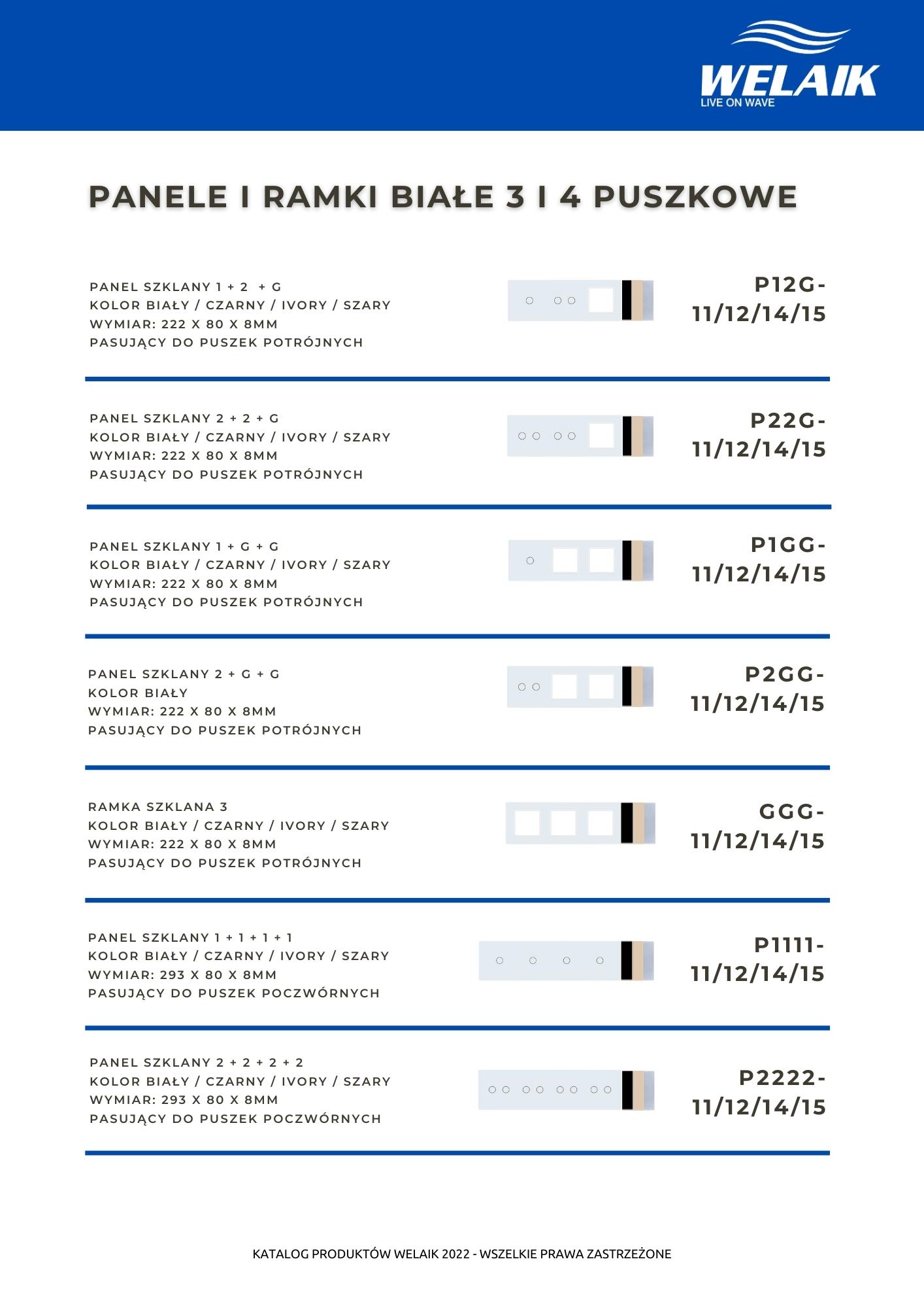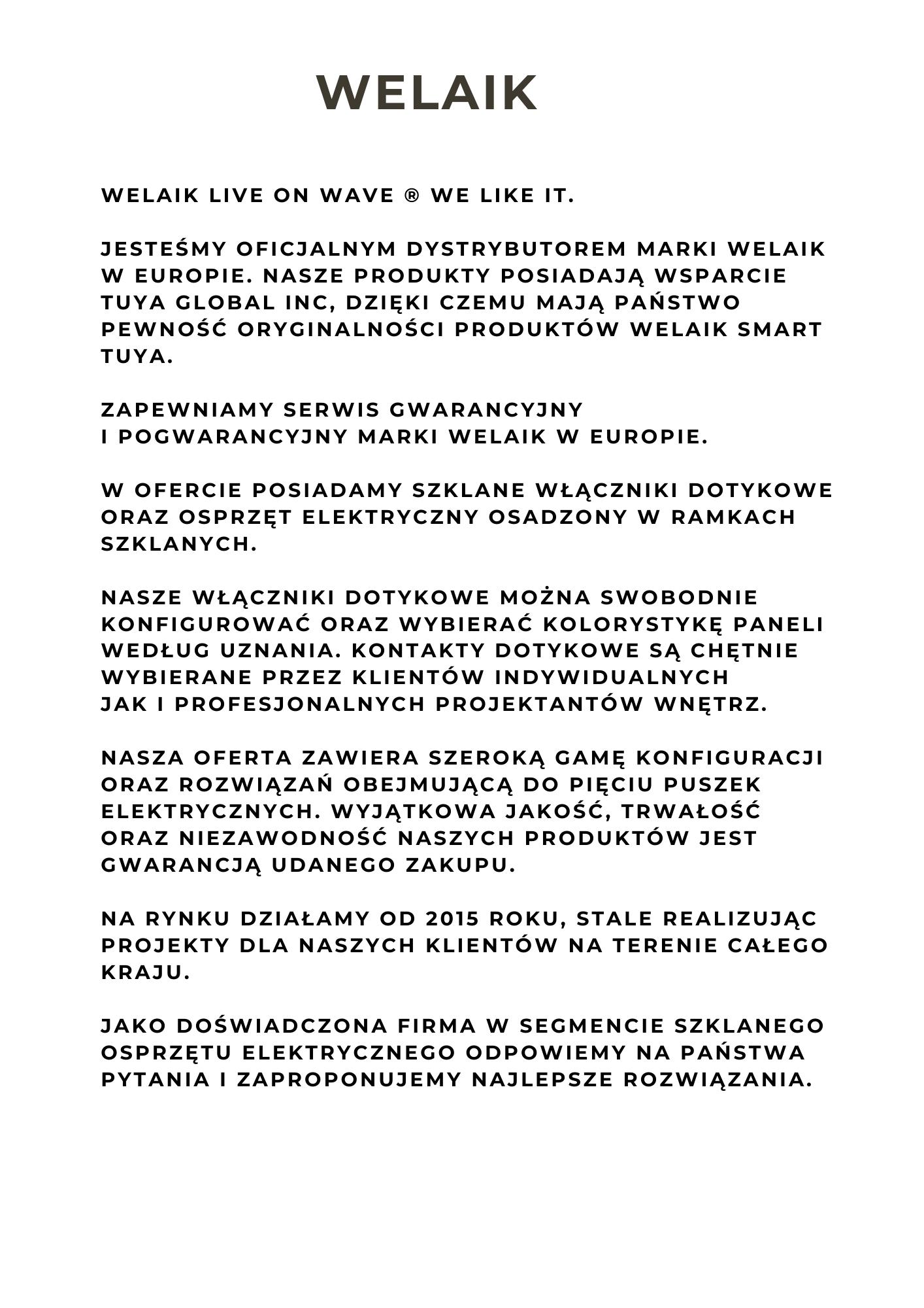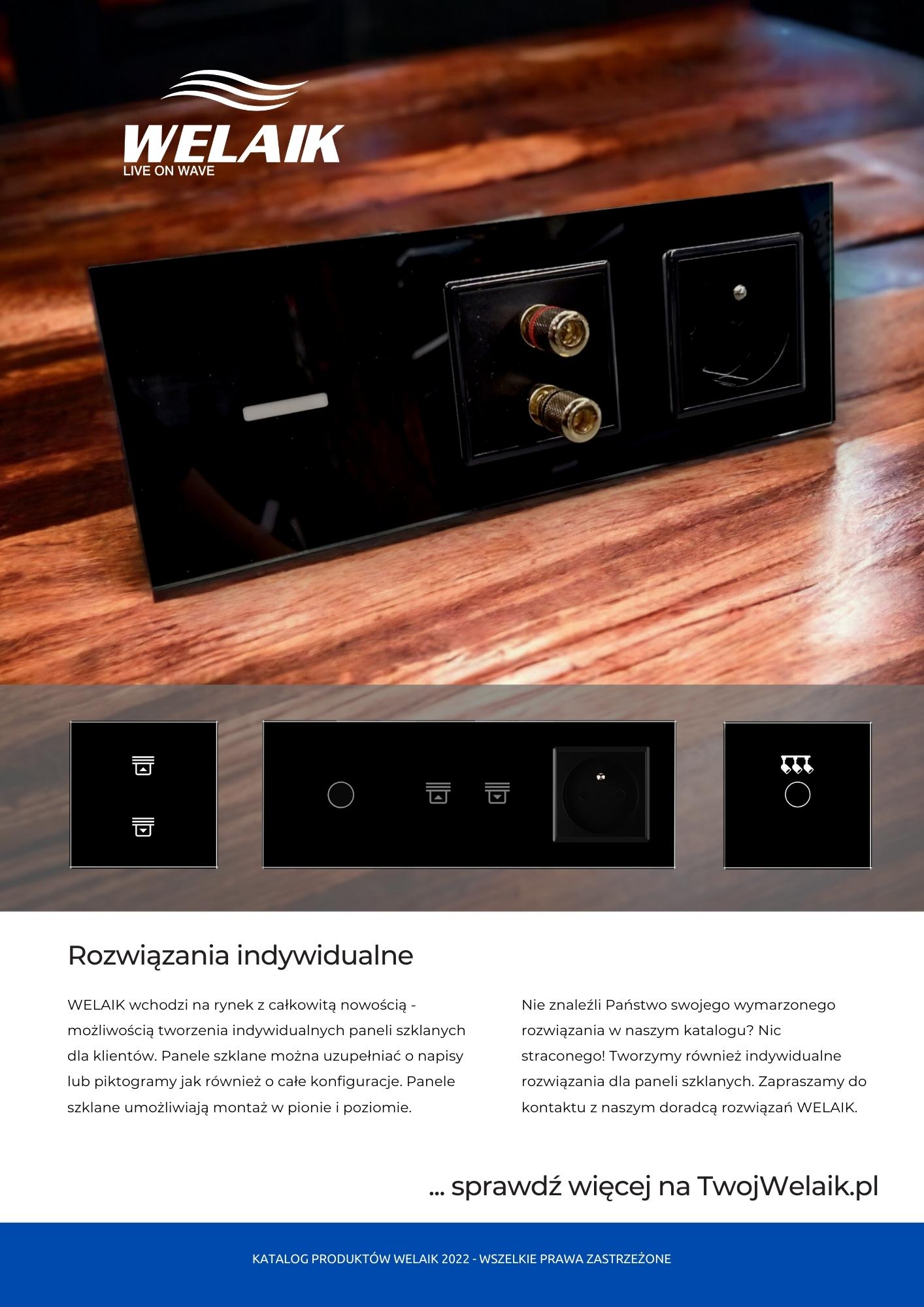 Katalog dostępnych rozwiązań szklanego osprzętu elektrycznego marki WELAIK.