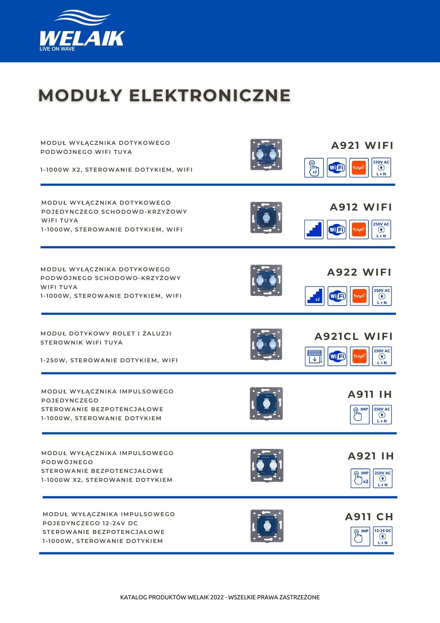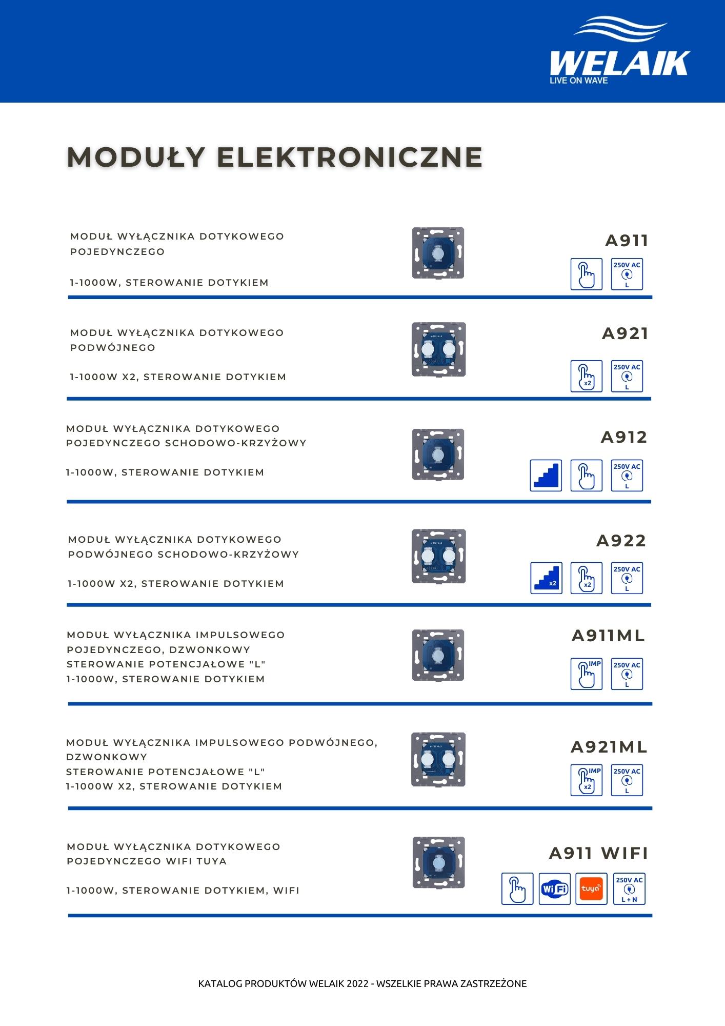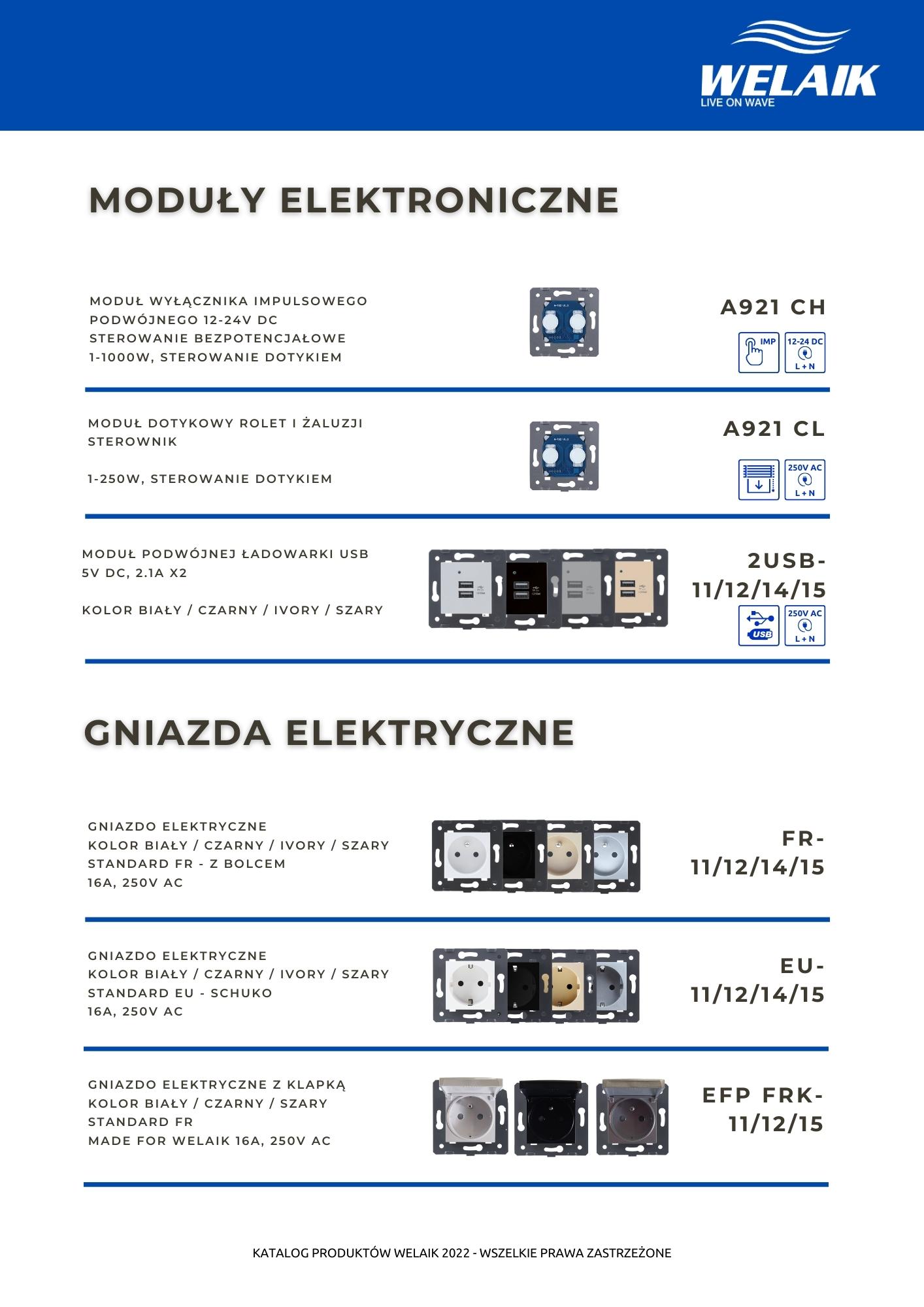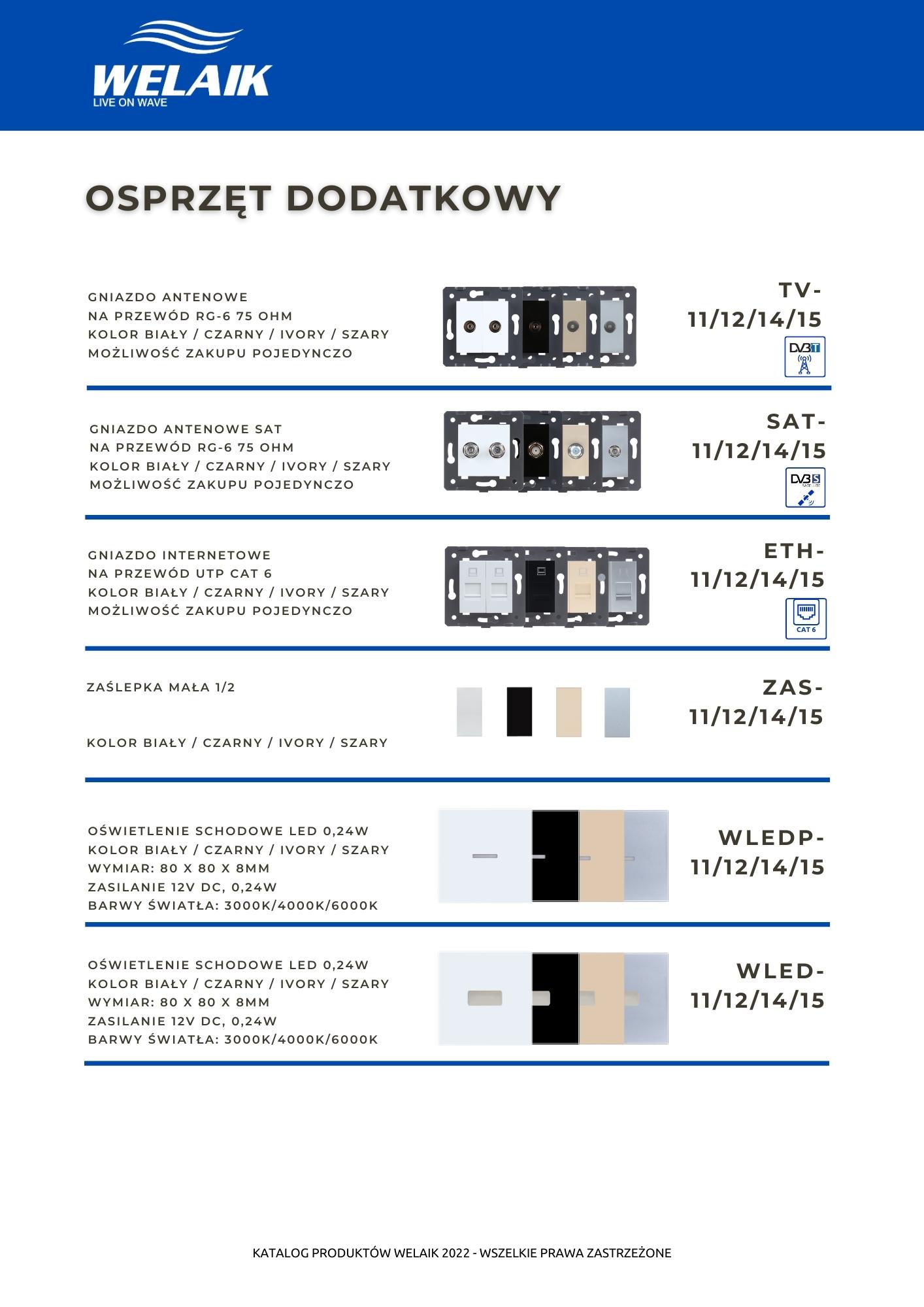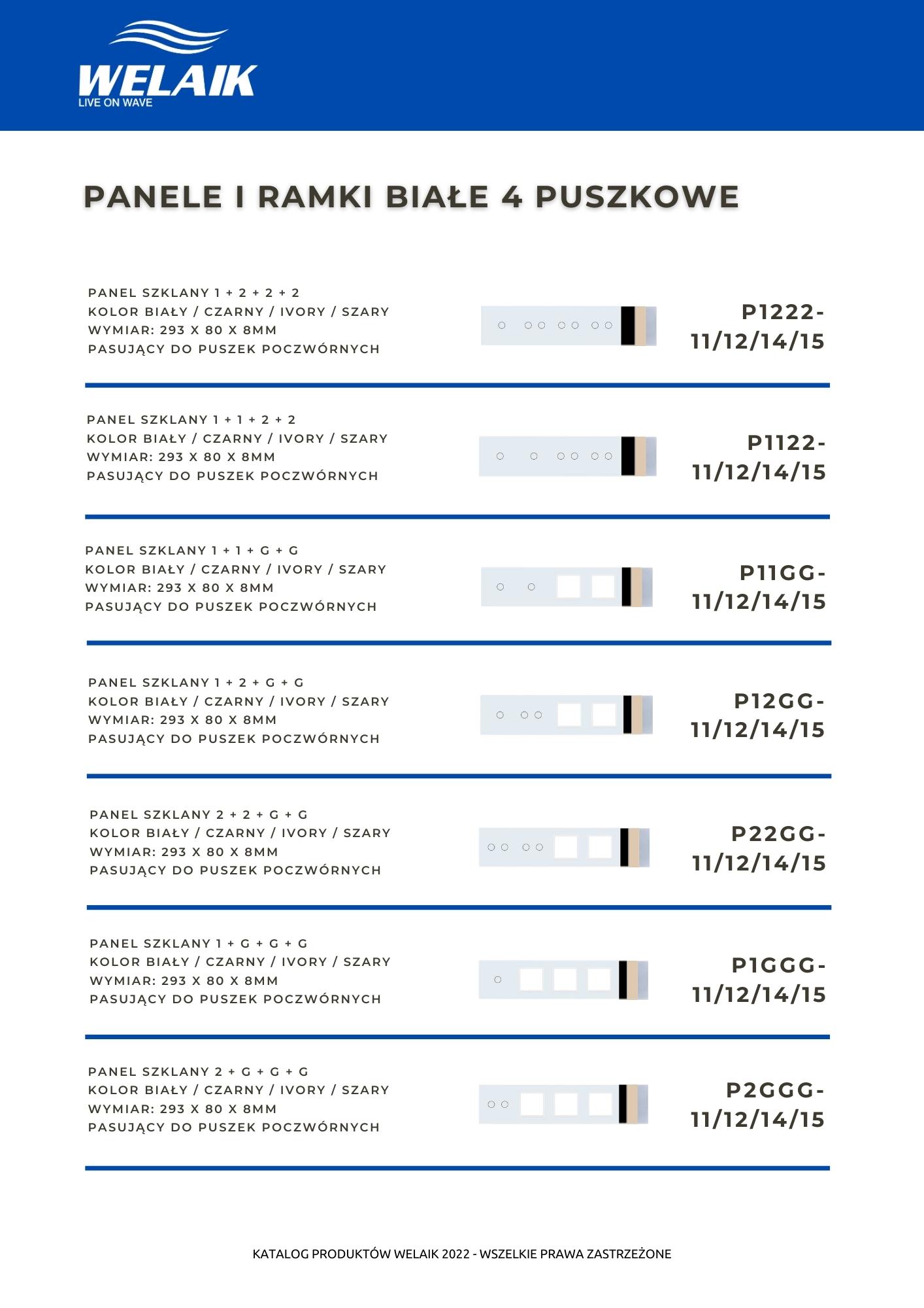 Katalog dostępnych rozwiązań szklanego osprzętu elektrycznego marki WELAIK.
